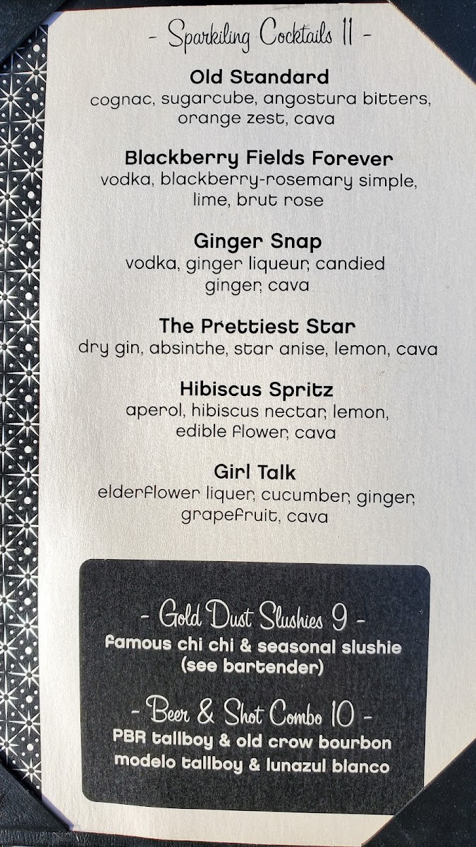 Gold Dust Meridian offers a thoughtfully curated menu that blends casual comfort with elevated bar fare. Expect a range of simple yet satisfying bites designed to complement the cocktail-driven atmosphere, perfect for both relaxed evenings and lively nights out with friends.